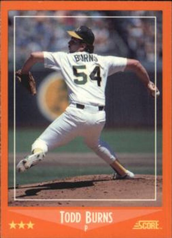 The Todd Burns 1988 Score Traded #106T Glossy card is 1 of 2 Todd Burns' card variations in the 1988 Score Traded set being tracked by Sports Card Investor, including Base.