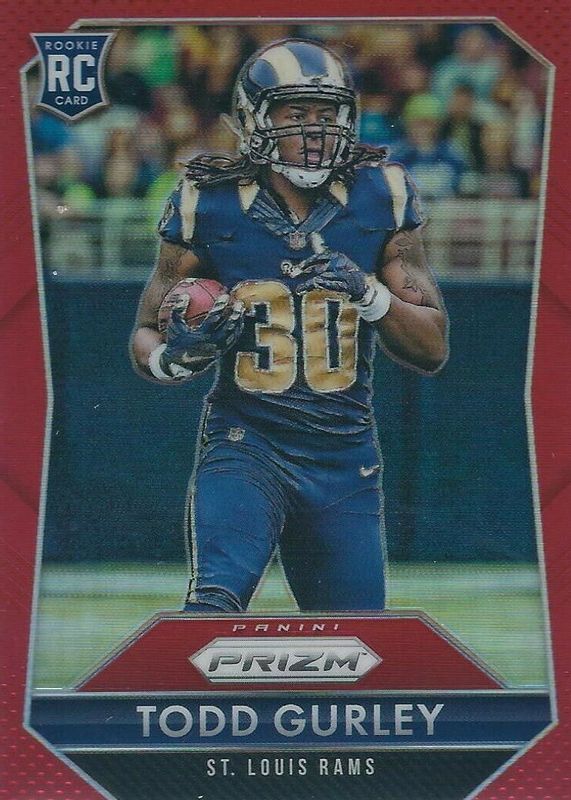 The Todd Gurley II 2015 Prizm #291 Red Rookie card in Raw condition has moved up $2.00 (+50.0%) in the last 30 days and was last sold for $6.00 .