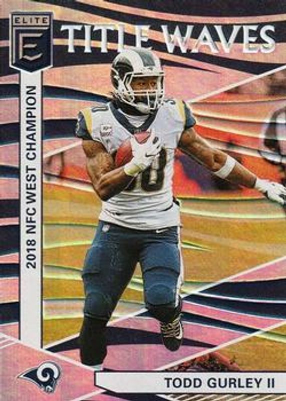 The Todd Gurley II 2019 Elite #TW-10 Title Waves card is 1 of 33 Todd Gurley II's card variations in the 2019 Elite set being tracked by Sports Card Investor, including Green, Red /299, Purple /99, Status /97, and Orange /49.