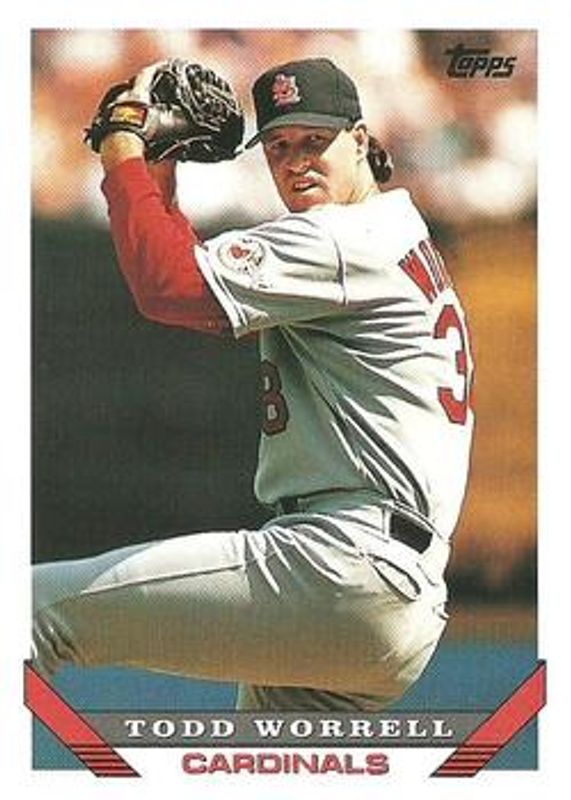 The Todd Worrell 1993 Topps #121 Base card is 1 of 2 Todd Worrell's card variations in the 1993 Topps set being tracked by Sports Card Investor, including Gold.