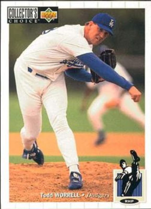 The Todd Worrell 1994 Upper Deck Collector's Choice #567 Base card is 1 of 3 Todd Worrell's card variations in the 1994 Upper Deck Collector's Choice set being tracked by Sports Card Investor, including Gold Signatures, and Silver Signatures.