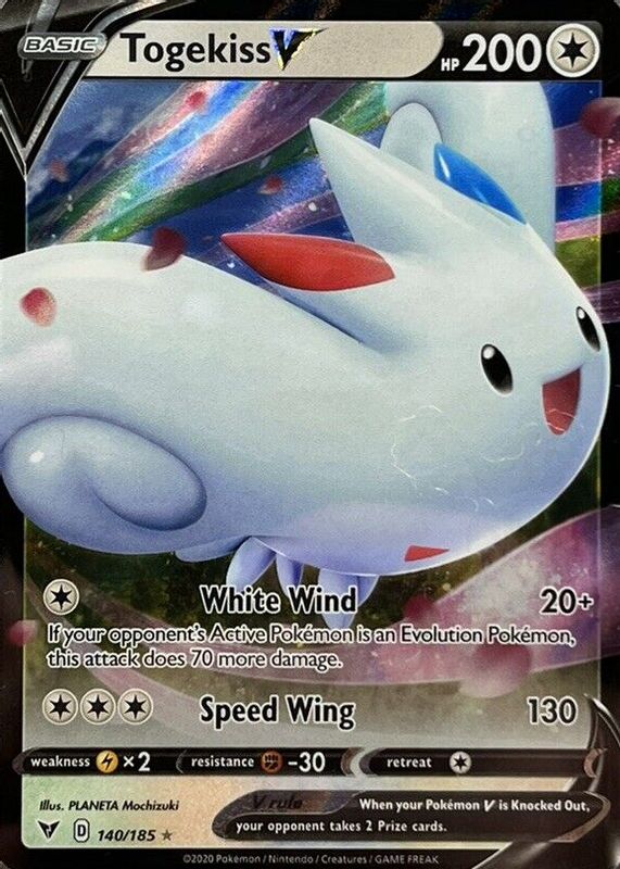 The Togekiss V 2020 Sword & Shield: Vivid Voltage #140/185 Holo card in Raw TCG (Near Mint) condition has moved up $0.44 (+24.0%) in the last 30 days and was last sold for $2.25 .