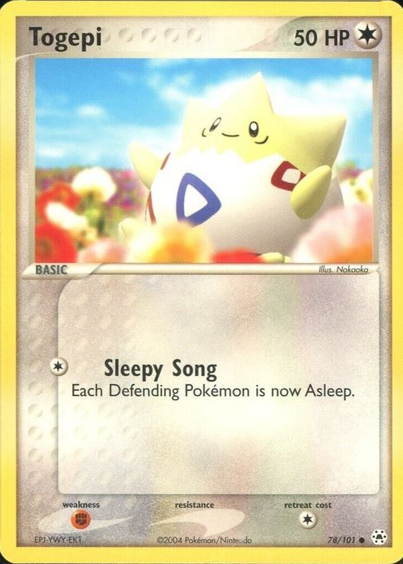 The Togepi 2004 EX: Hidden Legends #078/101 Base card in Raw TCG (Near Mint) condition has not changed in price in the last 30 days and was last sold for $2.74 .