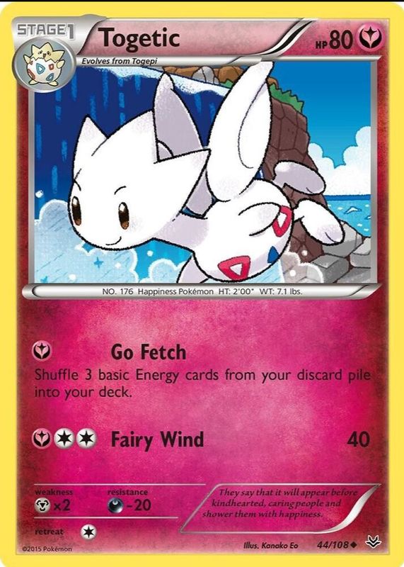 The Togetic 2015 XY: Roaring Skies #044/108 Base card in Raw TCG (Near Mint) condition has moved up $7.46 (+391%) in the last 30 days and was last sold for $9.37 .