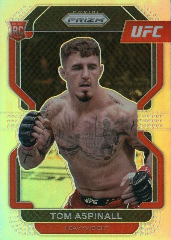 The Tom Aspinall 2022 Prizm UFC #134 Silver Rookie card in Raw condition has moved down -$0.53 (-5.9%) in the last 30 days and was last sold for $8.47 .