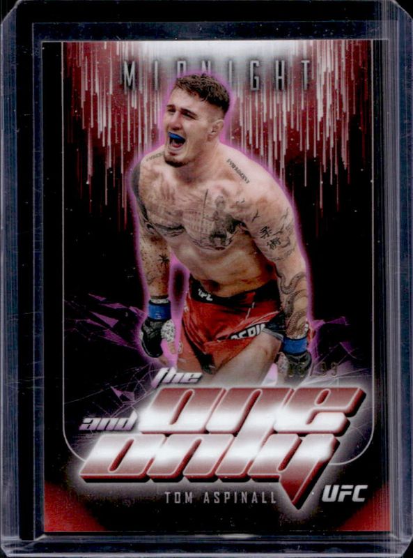 The Tom Aspinall 2024 Topps Midnight UFC #TO-30 The One & Only card is 1 of 33 Tom Aspinall's card variations in the 2024 Topps Midnight UFC set being tracked by Sports Card Investor, including Base, Moon Beam, Morning /125, Twilight /99, and Dusk /75.