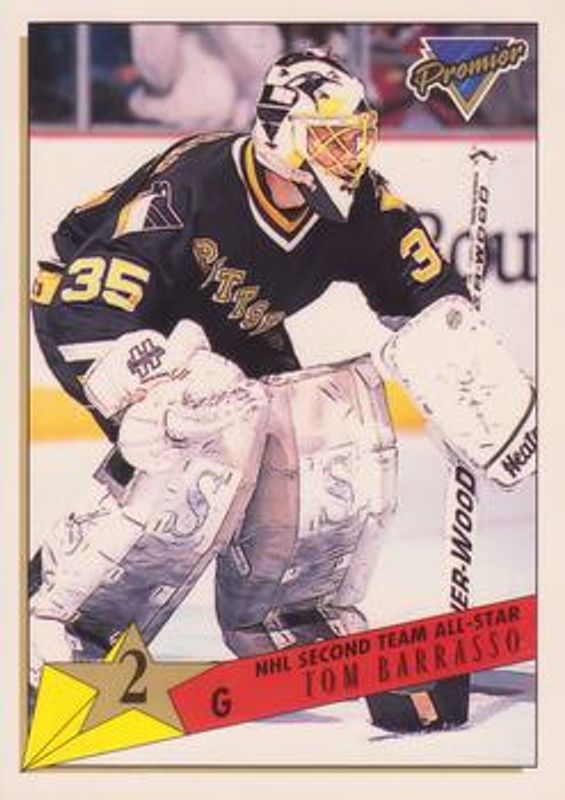 The Tom Barrasso 1993 Topps Premier #175 Base card is 1 of 9 Tom Barrasso's card variations in the 1993 Topps Premier set being tracked by Sports Card Investor, including #501 Base, #204 Base, #446 Base, #501 Gold, and #175 Gold.