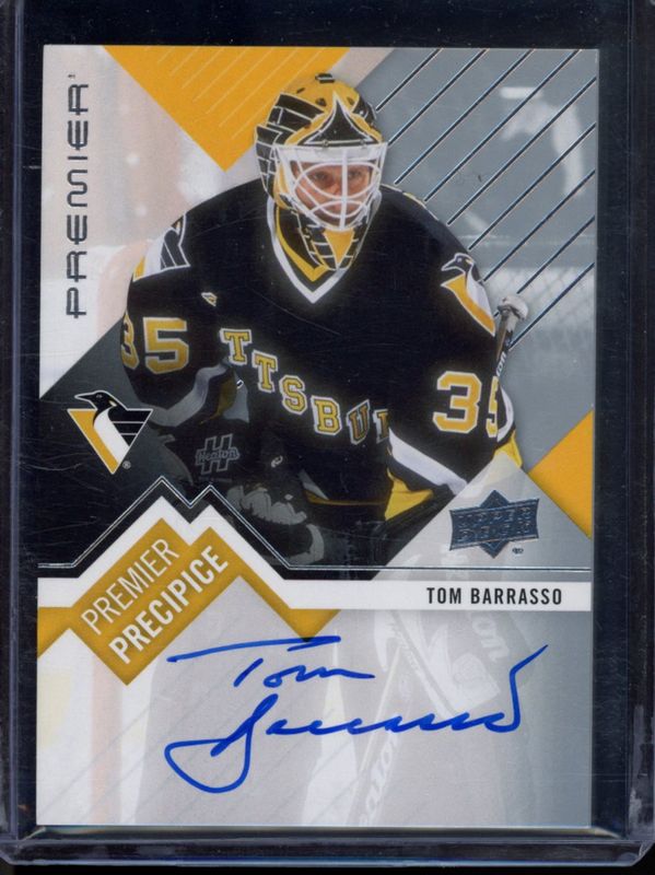 The Tom Barrasso 2023 Upper Deck Premier #PPL-TB Premier Precipice Auto Legends card is 1 of 2 Tom Barrasso's card variations in the 2023 Upper Deck Premier set being tracked by Sports Card Investor, including Premier Precipice Auto Legends - Gold /10.
