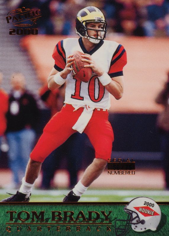 This card is 1 of 8 Tom Brady's card variations in the 2000 Pacific set being tracked by Sports Card Investor, including Base, Draft Picks /999, Platinum Blue Draft Picks /399, Gold /199, and Premiere Date /78.