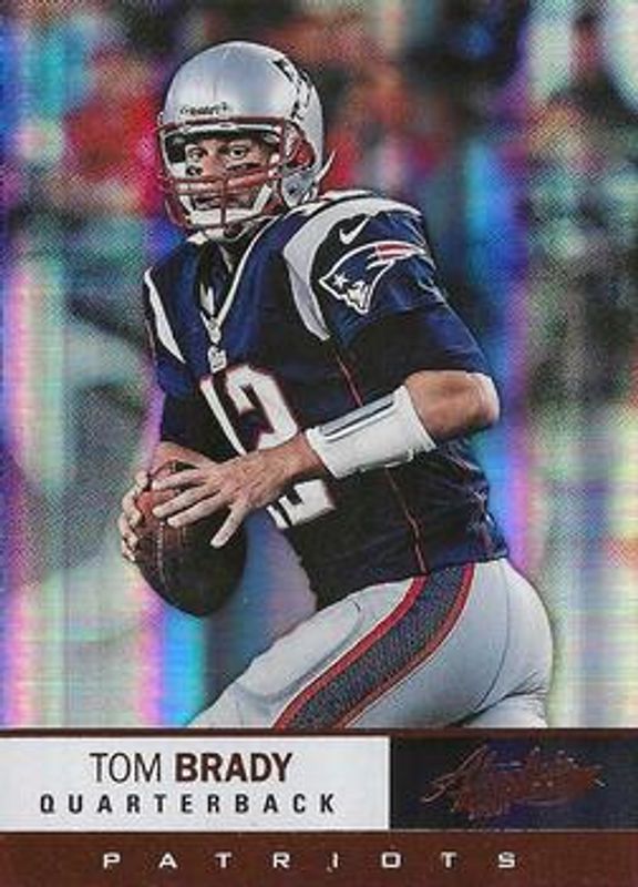 The Tom Brady 2012 Absolute #34 Base /299 card is 1 of 23 Tom Brady's card variations in the 2012 Absolute set being tracked by Sports Card Investor, including Spectrum Red, Retail /399, Spectrum Blue /100, Spectrum Silver /50, and Spectrum Black /25.