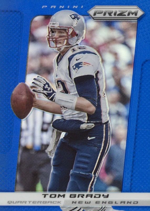 The Tom Brady 2013 Prizm #64 Blue card in Raw condition has moved down -$50.00 (-12.5%) in the last 30 days and was last sold for $350.00 .
