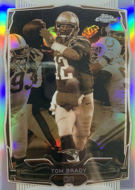 This card is 1 of 15 Tom Brady's card variations in the 2014 Topps Chrome set being tracked by Sports Card Investor, including Base, Blue Wave Refractor, Green Refractor, Orange Refractor, and Pulsar Refractor.