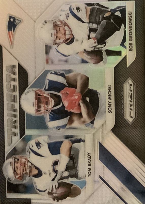 2018 Panini Prizm - Trifecta Tom Brady, Rob Gronkowski, Sony Michel #TRI-NE (RC)