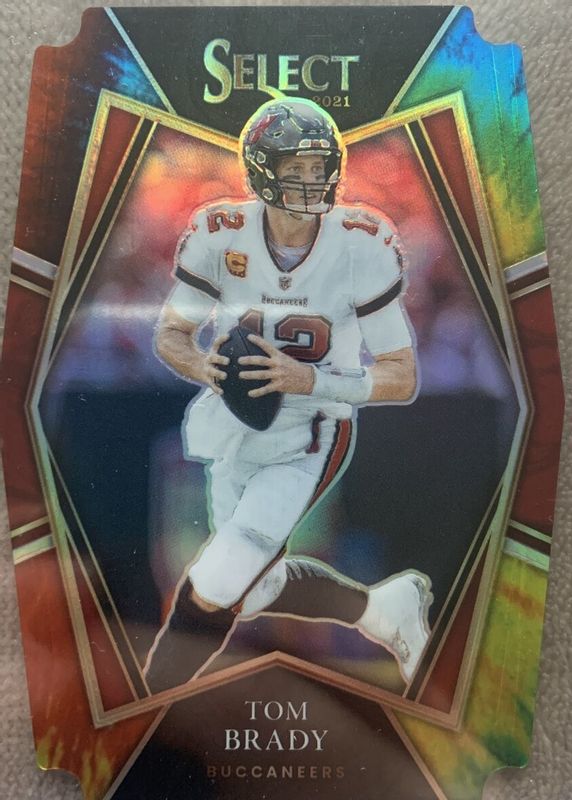 #1/1 Jersey Number, 2021 Select Tom Brady Die Cut Tie Dye Prizm #12/25 Premier