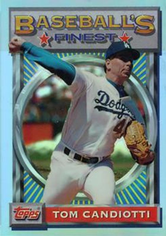 The Tom Candiotti 1993 Topps Finest #132 Refractor card is 1 of 2 Tom Candiotti's card variations in the 1993 Topps Finest set being tracked by Sports Card Investor, including Base.