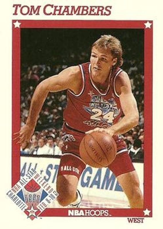 The Tom Chambers 1991 Hoops #261 Base card is 1 of 5 Tom Chambers' card variations in the 1991 Hoops set being tracked by Sports Card Investor, including #163 Base, #489 Base, #523 Base, and #VIII MVP All Stars.
