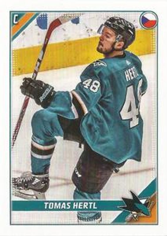 The Tomas Hertl 2019 Topps Stickers #405 Base card is 1 of 2 Tomas Hertl's card variations in the 2019 Topps Stickers set being tracked by Sports Card Investor, including Base.