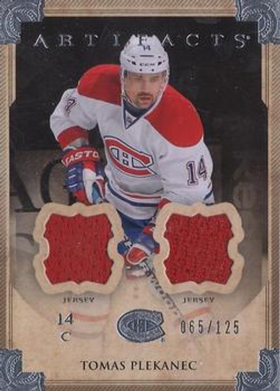 The Tomas Plekanec 2013 Upper Deck Artifacts #95 Jersey Jersey Silver /125 card is 1 of 14 Tomas Plekanec's card variations in the 2013 Upper Deck Artifacts set being tracked by Sports Card Investor, including Base /899, Ruby /299, Emerald /99, Sapphire /85, and Spectrum /25.
