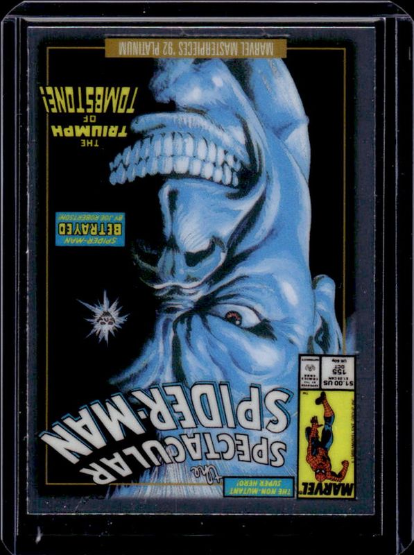 The Tombstone 2024 Upper Deck Marvel Masterpieces '92 Platinum #99-V Variant Cover card is 1 of 38 Tombstone's card variations in the 2024 Upper Deck Marvel Masterpieces '92 Platinum set being tracked by Sports Card Investor, including Base, Blue Traxx, Canvas, Clear Cut, and Emerald Surge.