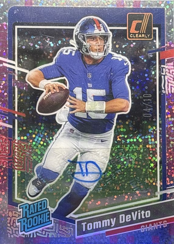 This card is 1 of 15 Tommy DeVito's card variations in the 2023 Clearly Donruss set being tracked by Sports Card Investor, including Base, Gold, Holo Mosaic, Holo Rated Rookie Logo, and Purple /199.