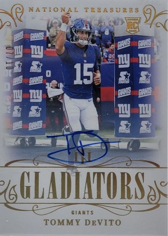 Tommy DeVito 2023 National Treasures #GLA-TD Gladiators Signatures - Holo Gold /10 Rookie RAW Price Guide