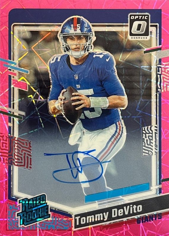 2023 Donruss Optic Football Tommy DeVito Pink Velocity Auto 39/50 Giants #280