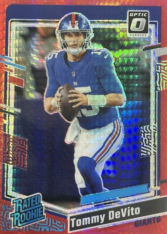 The Tommy DeVito 2023 Optic #280 Red Hyper Rookie card in Raw condition has not changed in price in the last 30 days and was last sold for $3.55 .