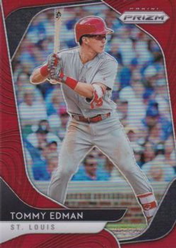 The Tommy Edman 2020 Prizm #213 Red Rookie card is 1 of 35 Tommy Edman's card variations in the 2020 Prizm set being tracked by Sports Card Investor, including Base, Blue, Carolina Blue, Cosmic Haze, and Green.