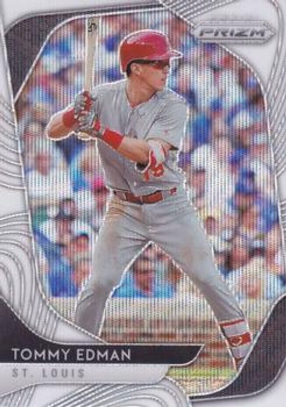 The Tommy Edman 2020 Prizm #213 White Wave Rookie card is 1 of 35 Tommy Edman's card variations in the 2020 Prizm set being tracked by Sports Card Investor, including Base, Blue, Carolina Blue, Cosmic Haze, and Green.