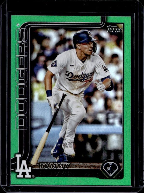 The Tommy Edman 2025 Topps #214 Green Rainbow /99 card is 1 of 70 Tommy Edman's card variations in the 2025 Topps set being tracked by Sports Card Investor, including Base, Aqua Holo Foil, Diamante Foil, Holo Foil, and Pink Diamante Foil.