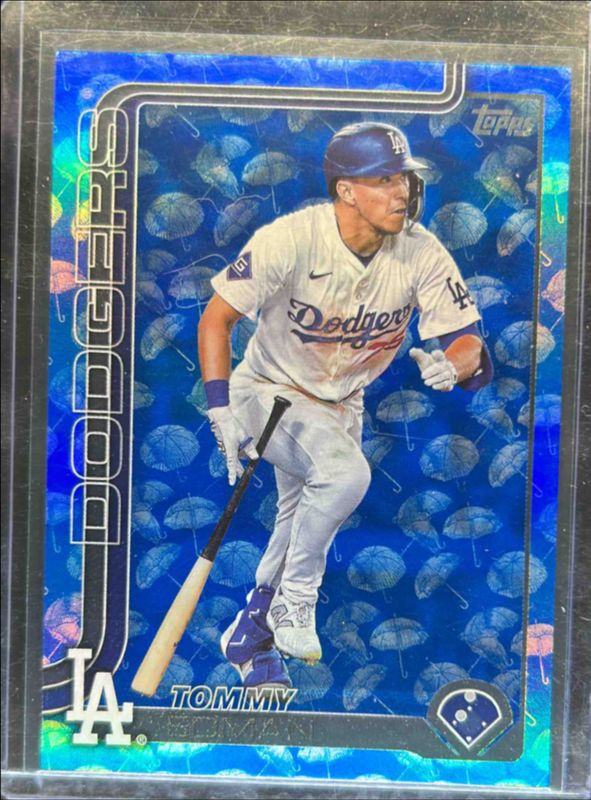 The Tommy Edman 2025 Topps #214 Holiday Umbrella /10 card is 1 of 70 Tommy Edman's card variations in the 2025 Topps set being tracked by Sports Card Investor, including Base, Aqua Holo Foil, Diamante Foil, Holo Foil, and Pink Diamante Foil.