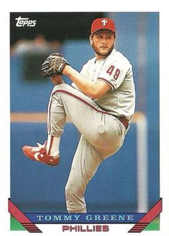 The Tommy Greene 1993 Topps #291 Base card is 1 of 2 Tommy Greene's card variations in the 1993 Topps set being tracked by Sports Card Investor, including Gold.