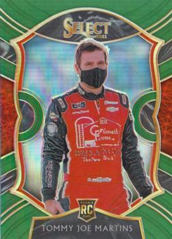 The Tommy Joe Martins 2021 Chronicles NASCAR #11 Select - Green Rookie card is 1 of 58 Tommy Joe Martins' card variations in the 2021 Chronicles NASCAR set being tracked by Sports Card Investor, including Base, Blue /199, Red /99, Purple /25, and Gold /10.