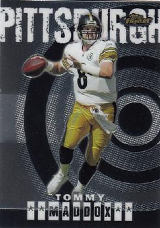 The Tommy Maddox 2004 Topps Finest #36 Base /399 card is 1 of 9 Tommy Maddox's card variations in the 2004 Topps Finest set being tracked by Sports Card Investor, including Refractors /199, Uncirculated Gold X-Fractors /150, Gold Refractor /50, X-Fractor /5, and Printing Plate Black /1.