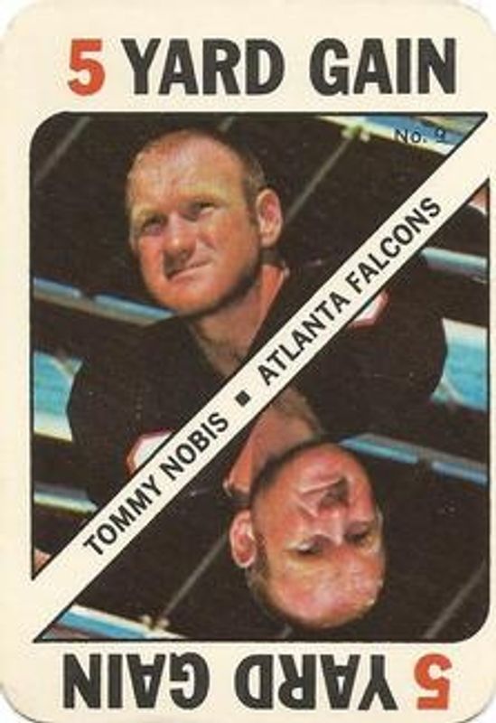 The Tommy Nobis 1971 Topps #9 Game Inserts card is 1 of 4 Tommy Nobis' card variations in the 1971 Topps set being tracked by Sports Card Investor, including Base, Posters, and Posters - Glossy.