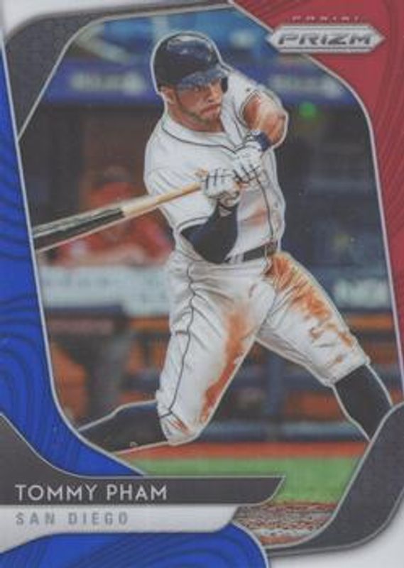 The Tommy Pham 2020 Prizm #29 Red White Blue card is 1 of 36 Tommy Pham's card variations in the 2020 Prizm set being tracked by Sports Card Investor, including Base, Blue, Carolina Blue, Cosmic Haze, and Green.