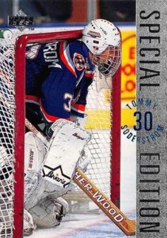 The Tommy Soderstrom 1995 Upper Deck #SE140 Special Edition card is 1 of 5 Tommy Soderstrom's card variations in the 1995 Upper Deck set being tracked by Sports Card Investor, including Base, Electric Ice, Electric Ice Gold, and Special Edition Gold.