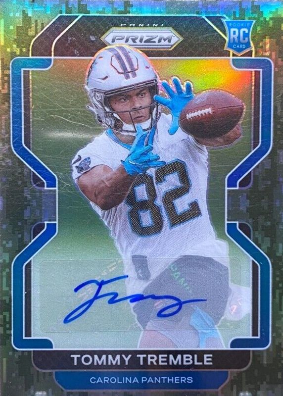 This card is 1 of 18 Tommy Tremble's card variations in the 2021 Prizm set being tracked by Sports Card Investor, including Silver, Rookie Autographs - No Huddle, Rookie Autographs - Pink, Rookie Autographs - Purple Pulsar, and Rookie Autographs - Silver.