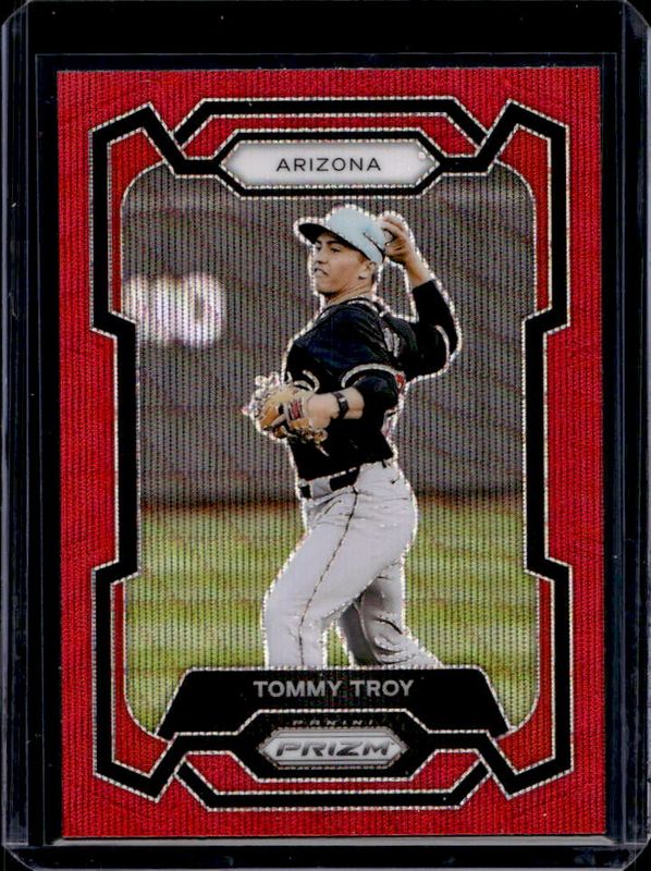 The Tommy Troy 2024 Prizm #164 Ruby Wave card is 1 of 59 Tommy Troy's card variations in the 2024 Prizm set being tracked by Sports Card Investor, including Base, Blue Ice, Green, Green Ice, and Pink Ice.