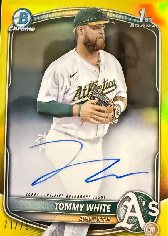 TOMMY WHITE 2025 Bowman Chrome 1st Prospect Auto TRUE YELLOW REFRACTOR 63/75 A’s
