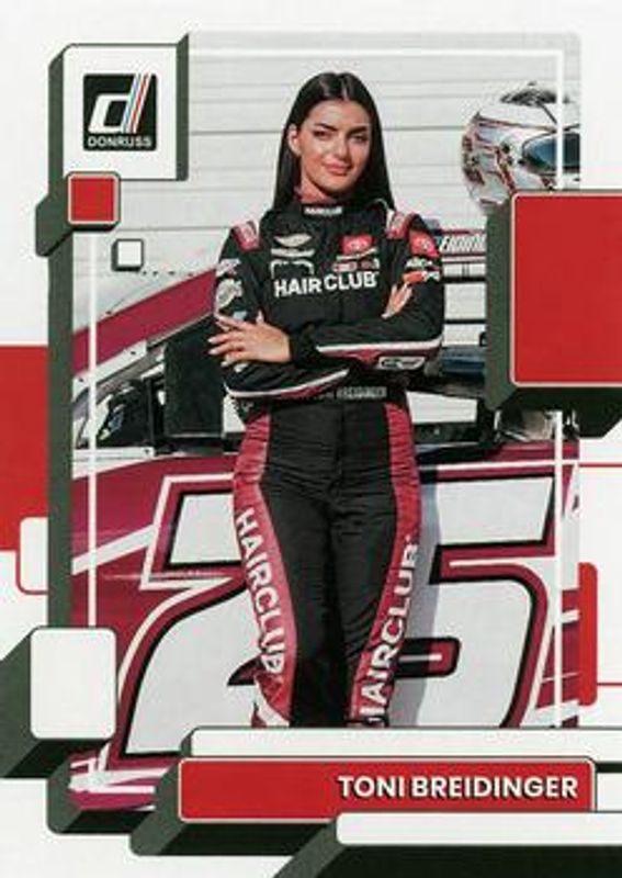 The Toni Breidinger 2023 Donruss NASCAR #93 Base card is 1 of 62 Toni Breidinger's card variations in the 2023 Donruss NASCAR set being tracked by Sports Card Investor, including #178 Base, #93 Carolina Blue, #178 Carolina Blue, #178 Lime Green, and #93 Lime Green.