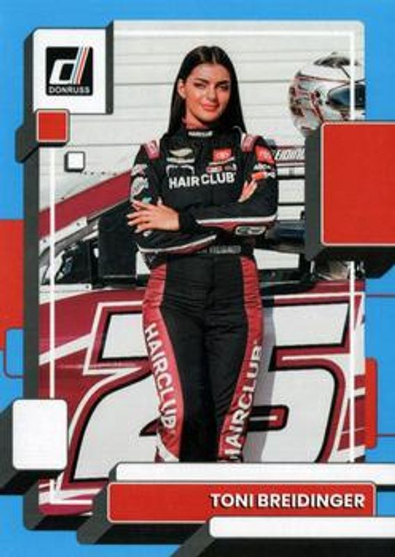 The Toni Breidinger 2023 Donruss NASCAR #93 Carolina Blue card is 1 of 62 Toni Breidinger's card variations in the 2023 Donruss NASCAR set being tracked by Sports Card Investor, including #178 Base, #93 Base, #178 Carolina Blue, #178 Lime Green, and #93 Lime Green.