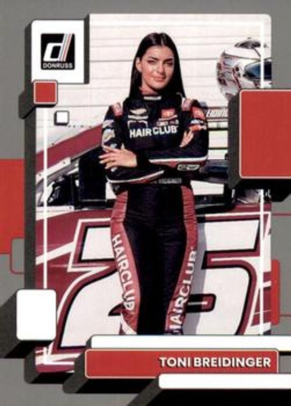 The Toni Breidinger 2023 Donruss NASCAR #93 Silver card is 1 of 62 Toni Breidinger's card variations in the 2023 Donruss NASCAR set being tracked by Sports Card Investor, including #178 Base, #93 Base, #93 Carolina Blue, #178 Carolina Blue, and #178 Lime Green.