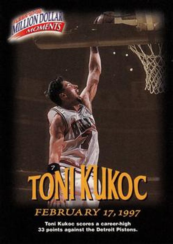 The Toni Kukoc 1997 Fleer #40 Million Dollar Moments card is 1 of 4 Toni Kukoc's card variations in the 1997 Fleer set being tracked by Sports Card Investor, including Base, Crystal, and Tiffany.