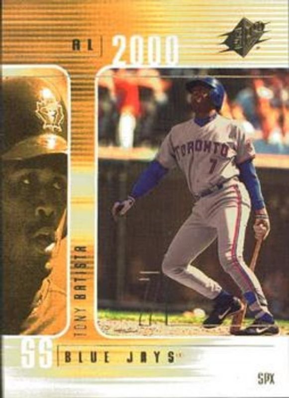 The Tony Batista 2000 SPx #19 Base /1500 card is 1 of 3 Tony Batista's card variations in the 2000 SPx set being tracked by Sports Card Investor, including Radiance /100, and Spectrum /1.