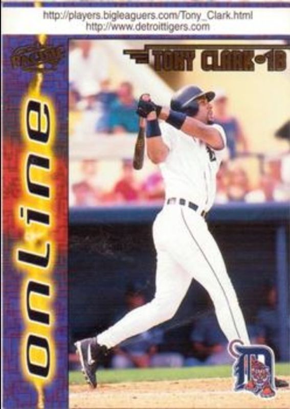The Tony Clark 1998 Pacific Online #268 Web Cards card is 1 of 8 Tony Clark's card variations in the 1998 Pacific Online set being tracked by Sports Card Investor, including #287 Base, #268 Base, #268 Base Winners, #287 Base Winners, and #268 Red.