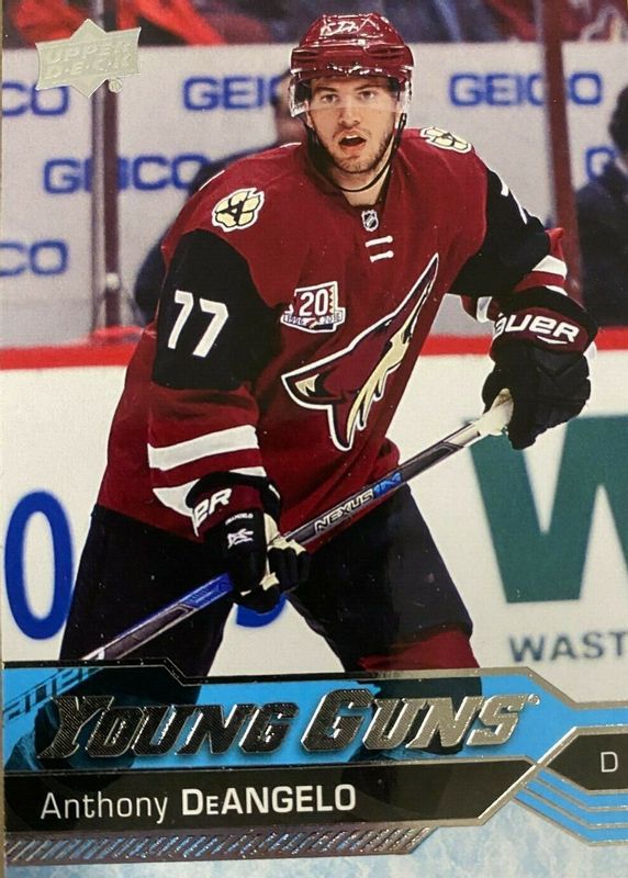 This card is 1 of 8 Tony DeAngelo's card variations in the 2016 Upper Deck set being tracked by Sports Card Investor, including Young Guns - Clear Cut, Young Guns - Gold Rainbow Foil, Young Guns - Jumbo, Young Guns - Silver Foil, and Young Guns - UD Exclusives /100.