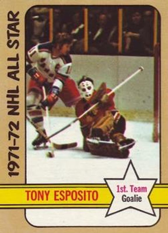 The Tony Esposito 1972 Topps #121 Base card is 1 of 2 Tony Esposito's card variations in the 1972 Topps set being tracked by Sports Card Investor, including Base.
