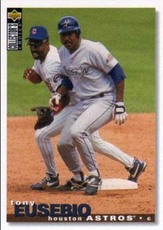 The Tony Eusebio 1995 Upper Deck Collector's Choice #114 Base card is 1 of 3 Tony Eusebio's card variations in the 1995 Upper Deck Collector's Choice set being tracked by Sports Card Investor, including Gold Signatures, and Silver Signatures.
