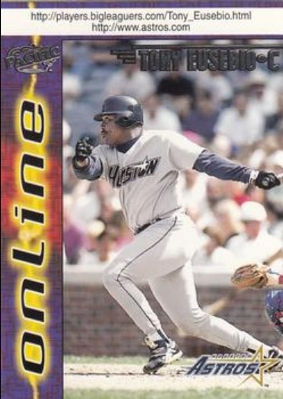 The Tony Eusebio 1998 Pacific Online #319 Base card is 1 of 4 Tony Eusebio's card variations in the 1998 Pacific Online set being tracked by Sports Card Investor, including Base Winners, Red, and Web Cards.